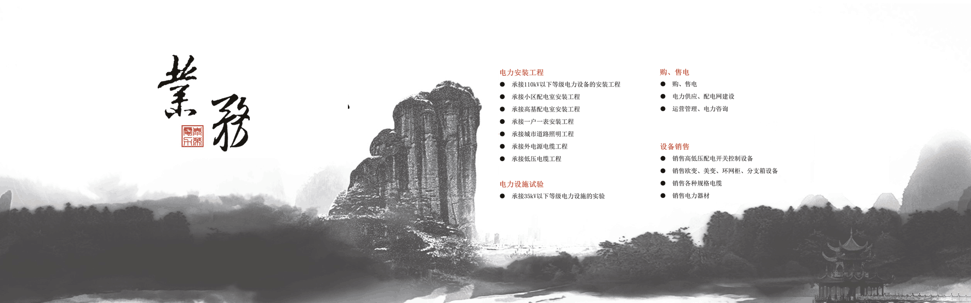 集高、低壓電力工程設(shè)計、安裝 、維護(hù)、試驗(yàn)為一體的專業(yè)電力施工企業(yè)。